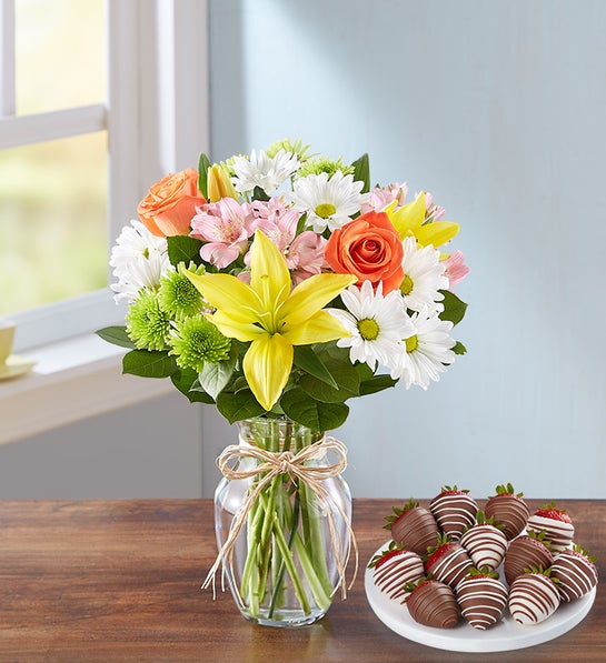 We’ve brought together blooms and berries for the perfect anytime surprise. Start with our best-selling arrangement, inspired by the rustic, hand-tied bouquets found in European flower markets. Then add a dozen strawberries, dipped and drizzled for a decadent treat. For big celebrations, or “just thinking of you” moments, it’s a gift full of sweet sentiment.