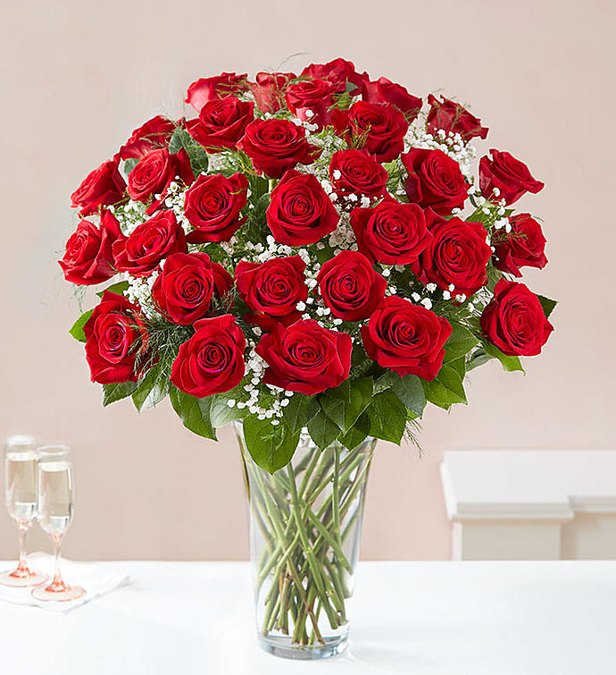 Our luxurious long stem red roses are the ultimate surprise to say “I love you.” Two, three or four dozen radiant blooms are artistically arranged by our expert florists inside an elegant glass vase and personally hand-delivered to help you say how you feel in a truly romantic way.