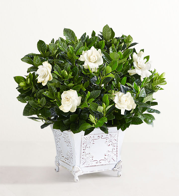 With its graceful, fragrant blooms and glossy green leaves, our gardenia is a favorite among plant lovers. Available in three sizes, it arrives budding in our antique-inspired planter. Make your gesture even more grand by adding our gardenia-scented Yankee Candle®.