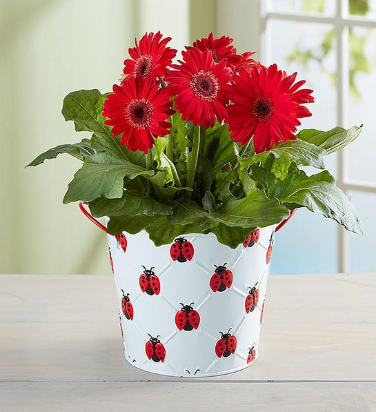Charming, cheerful, colorful: all in one gift! Our fresh red Gerbera daisy plant arrives in a white planter with a playful ladybug design to brighten their day—and maybe bring a little good luck. Available in two sizes, it’s a sweet surprise for someone you care about, especially when you add our giant ladybug crispy treat.